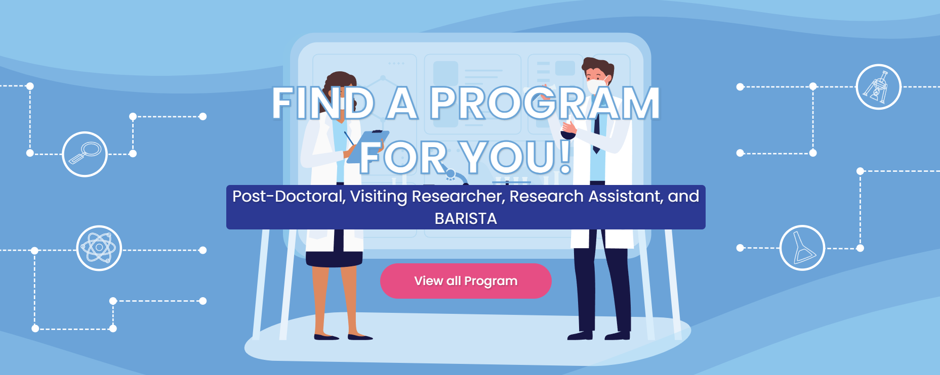 Badan Riset dan Inovasi Nasional RI sedang membuka program manajemen talenta bagi semua kalangan akademisi. Beberapa program yang dibuka di antaranya fellow / post-doc / asisten peneliti. Kesempatan ini tidak hanya bagi dosen, tetapi juga terbuka bagi mahasiswa untuk memperoleh beasiswa riset untuk tahap akhir perkuliahan.
