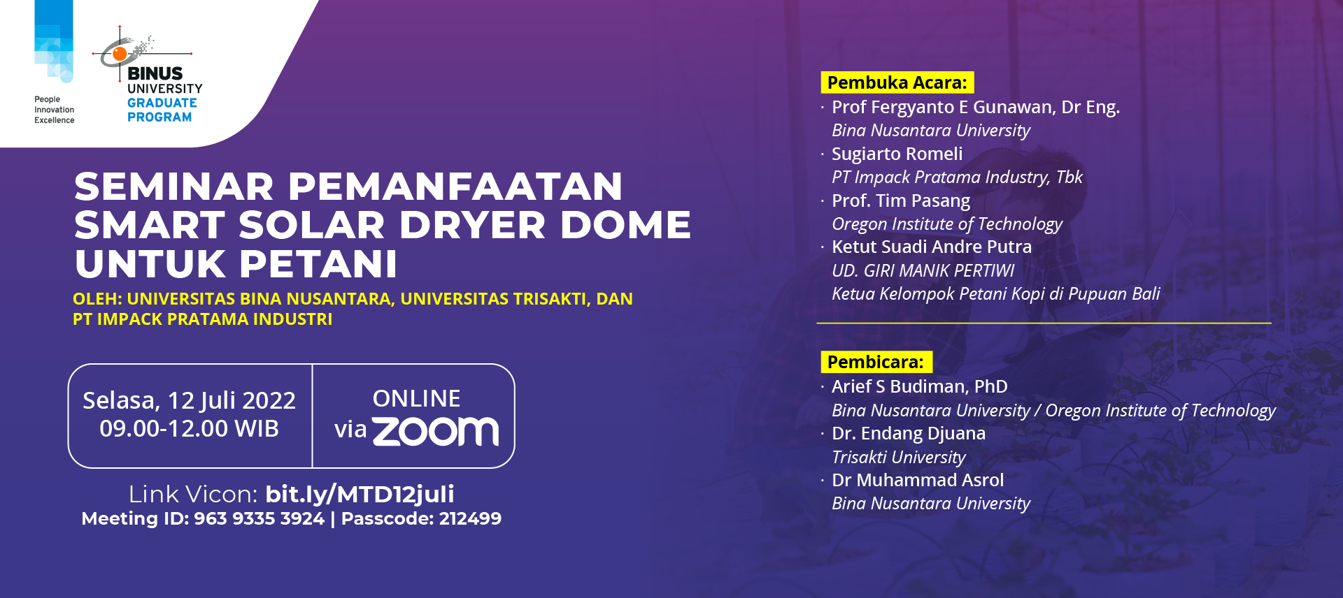 Kegaitan pengabdian kepada masyarakat ini juga merupakan lanjutan dari kegiatan penelitian untuk memberikan manfaat yang lebih luas bagi petani. Kegiatan ini juga didukung oleh Oregon Institute of Technology (OIT), USA melalui skema penelitian Internasional Binus. Turut hadir pada kegiatna ini Prof Tim Pasang dari OIT.