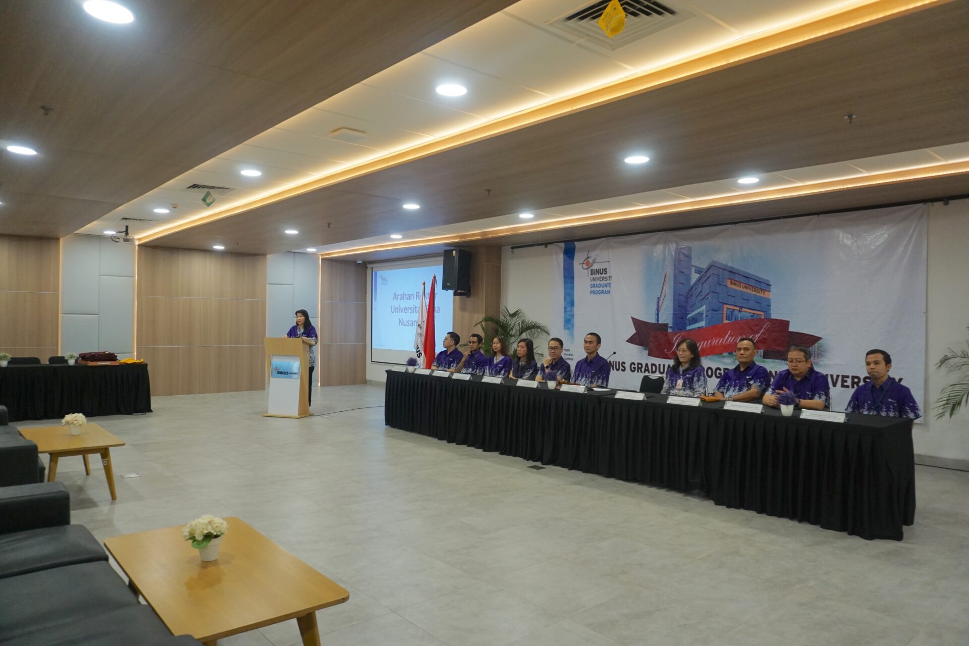 Inagurasi ini dihadiri dan dipimpin langsung oleh jajaran pimpinan BINUS University, mencerminkan besarnya perhatian dan komitmen institusi terhadap pengembangan program pascasarjana. Acara ini diawali dengan sesi perkenalan jajaran BINUSIAN Leaders yang memperkenalkan para pimpinan universitas kepada mahasiswa baru. Hadir dalam kesempatan tersebut Dr. Nelly, S.Kom., M.M., CSCA, Rektor Universitas Bina Nusantara, Dr. Reina, S.Kom., M.M. selaku Vice Rector – Academic Operation & Resources, Prof. Dr. Ir. Yohannes Kurniawan, S.Kom., S.E., MMSI. selaku Vice Rector – Student Affairs, serta Prof. Dr. Sani Muhamad Isa, S.Si., M.Kom. selaku Direktur BGP,