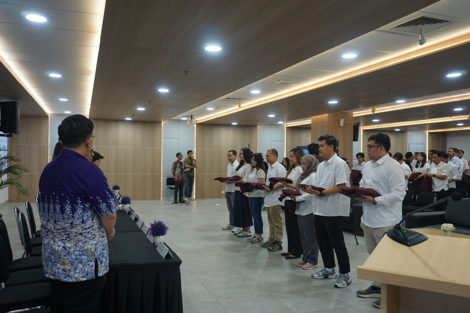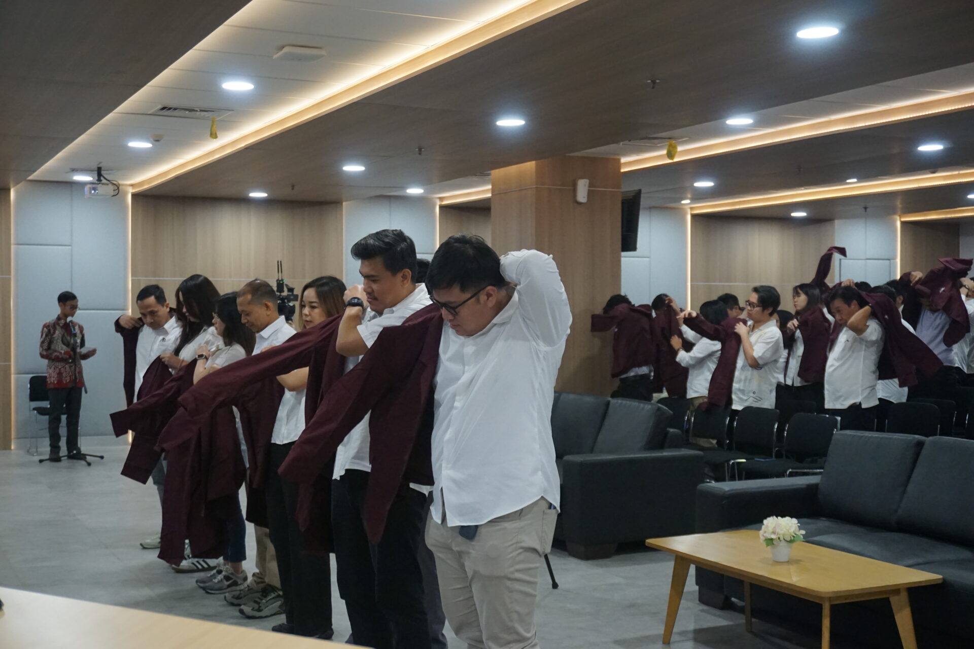 Salah satu momen berkesan dalam inaugurasi ini adalah prosesi pelantikan mahasiswa baru, di mana seluruh peserta secara bersama-sama mengenakan almamater BINUS sebagai simbol resmi bergabungnya mereka dalam keluarga besar BINUS University. Prosesi ini bukan sekadar seremonial. Di balik setiap lipatan almamater yang mereka kenakan, terkandung janji, harapan, dan tanggung jawab besar untuk menjadi intelektual yang tidak hanya cerdas secara akademis, tetapi juga berkontribusi bagi masyarakat dan negeri.