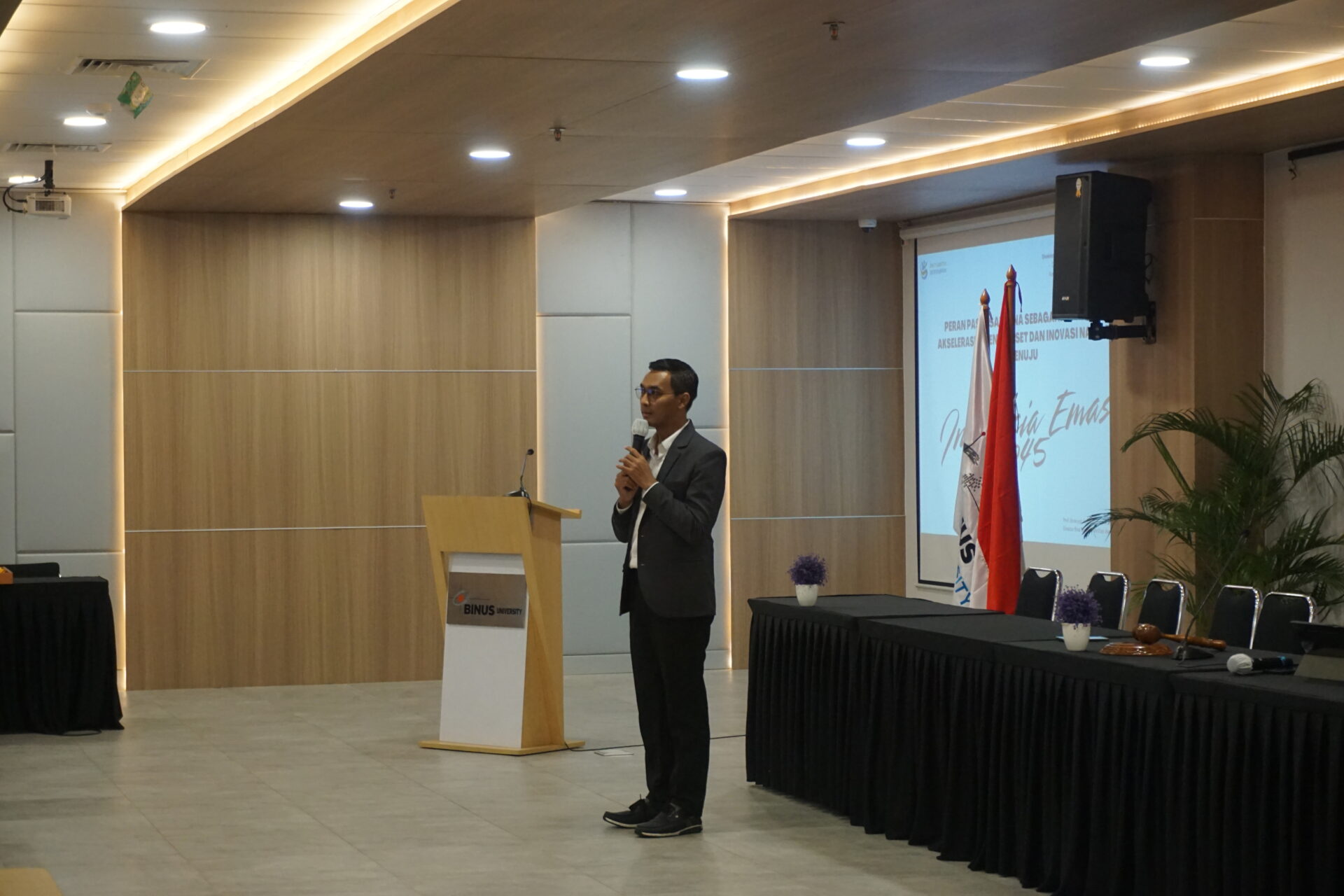 Setelah rangkaian sambutan dari pimpinan BINUS University, acara dilanjutkan dengan sambutan kehormatan dari perwakilan Universitas Padjadjaran (UNPAD). Kehadiran perwakilan dari salah satu universitas negeri bergengsi di Indonesia ini menjadi simbol nyata dari semangat kolaborasi dan sinergi antar-institusi pendidikan tinggi.