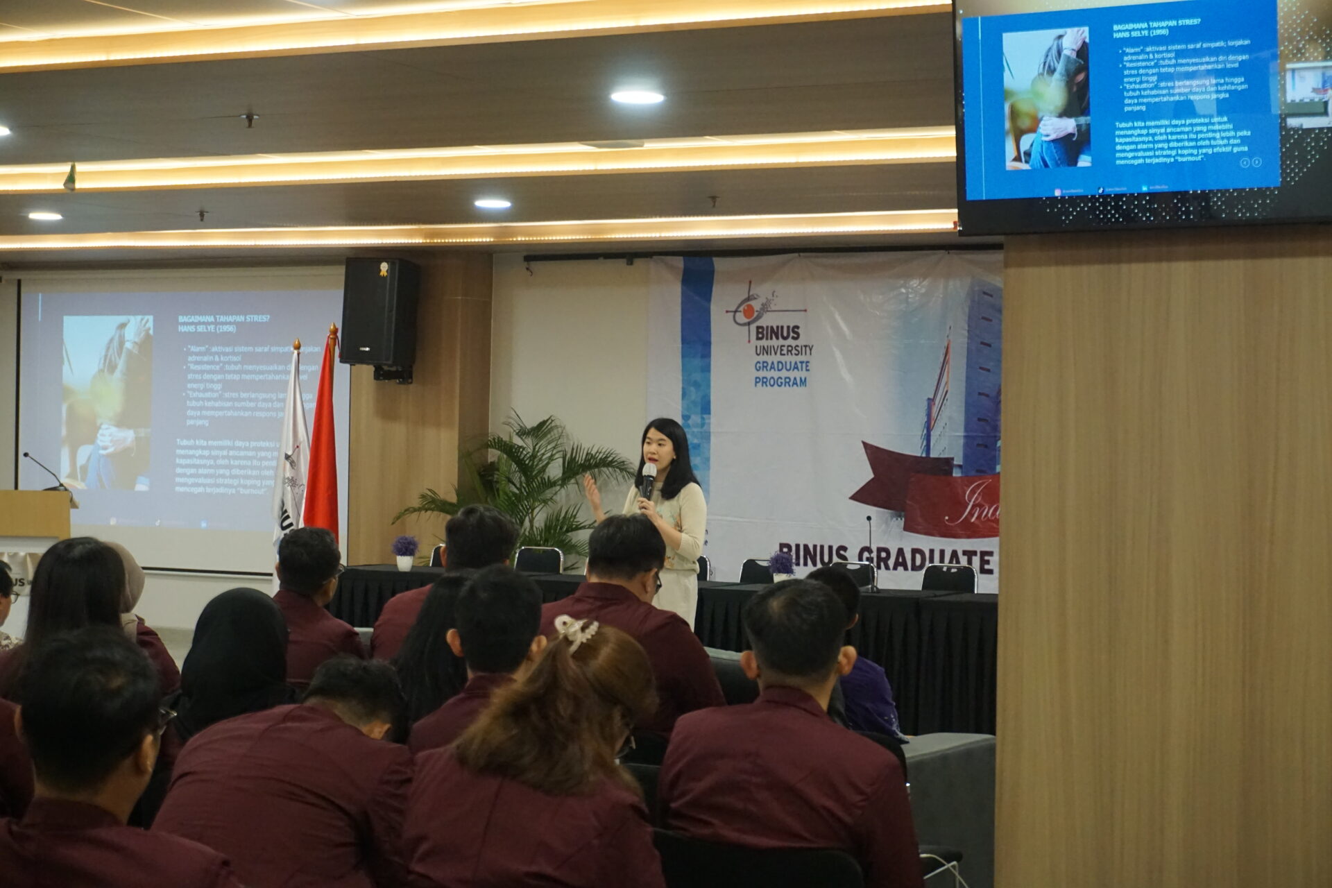 Melengkapi sesi pertama yang penuh wawasan akademik, kuliah umum kedua hadir dengan nuansa yang berbeda namun tak kalah penting mengangkat topik “Dari Tekanan ke Ketenangan: Seni Mengatur Stres” yang dibawakan oleh Melisa, M.Psi., Psikolog, Psikolog Klinis Dewasa sekaligus Founder @betterme.idn. Sesi ini memberikan wawasan penting mengenai pengelolaan stres di tengah tuntutan akademik dan profesional.